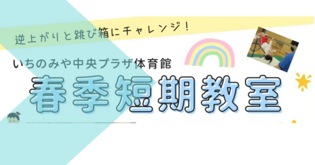 春休みにお子さまの「できた!」を増やしませんか? いちのみや中央プラザ体育館では、逆上がり・跳び箱にチャレンジする【春季短期教室】が開催されます。 【【1月4日(日)申し込み開始】逆上がり&跳び箱に挑戦!いちのみや中央プラザ体育館で春季短期... -